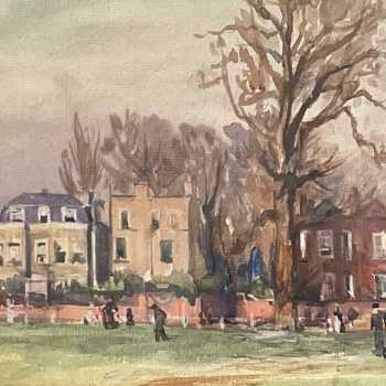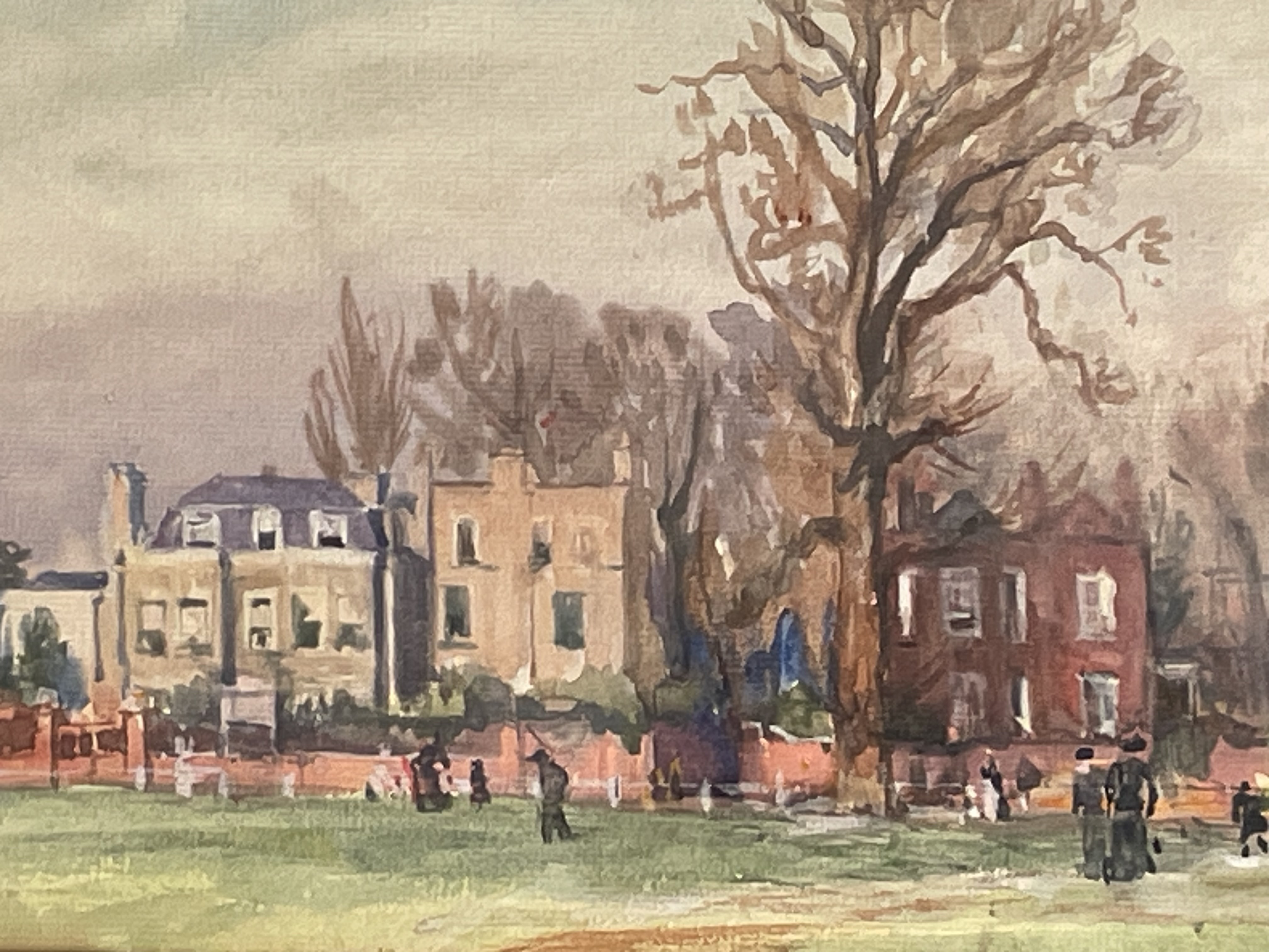 Stamford Brook Green 1906 Francis Dodd (1874 - 1949) Watercolour Frame: 13” x 17” Image: 7” x 11” Francis Edgar Dodd RA was a British portrait painter, landscape artist and printmaker. He earned a considerable peacetime reputation for the quality of his watercolours and portrait commissions and was appointed a trustee of the Tate Gallery in 1929. From 1911 Dodd lived at Arundel House (51 Blackheath Park) in Blackheath, London SE3, until he killed himself in 1949.