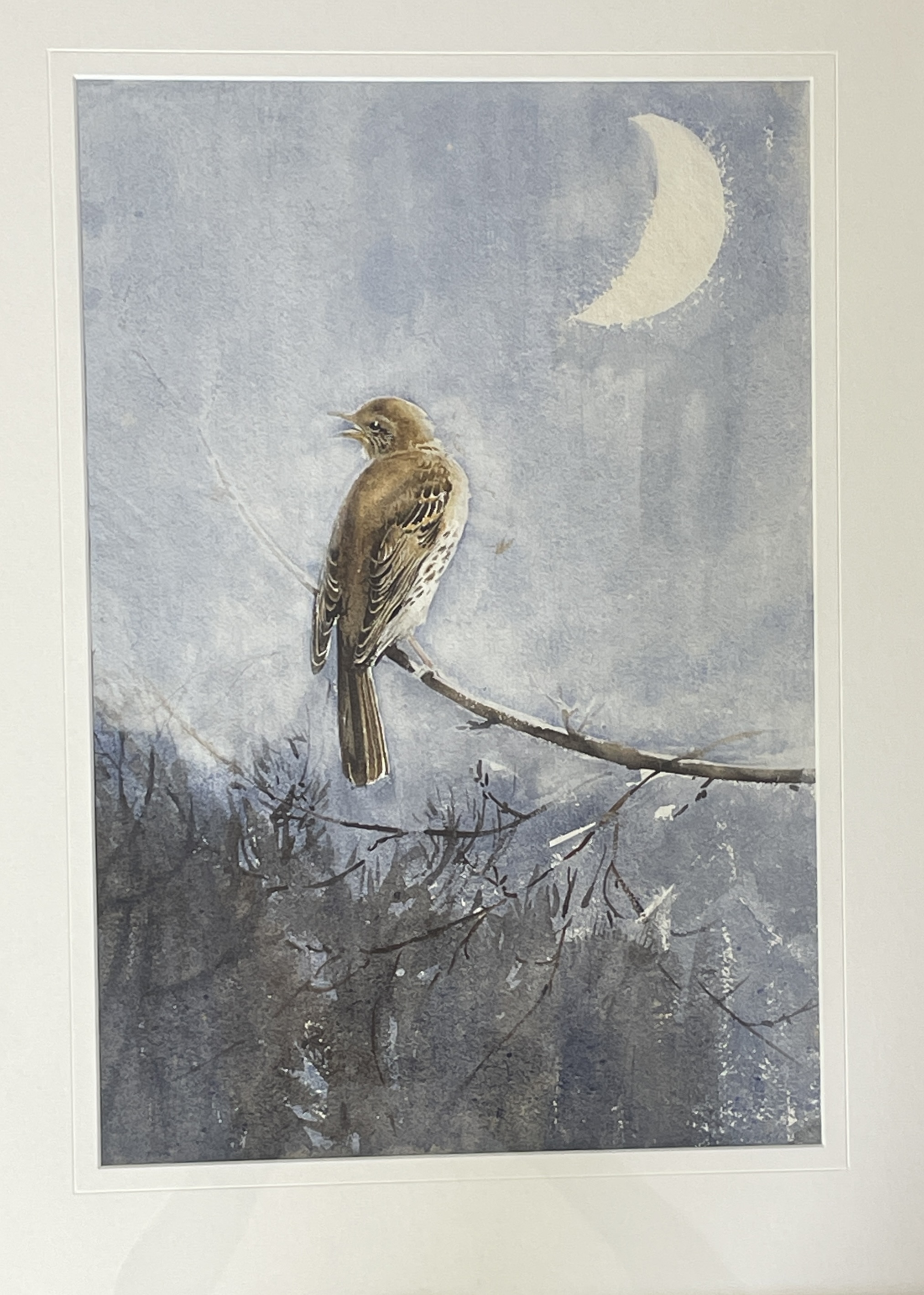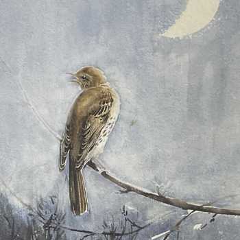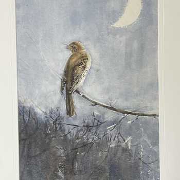 Eileen Soper RMS SWLA Missel Thrush Watercolour Provenance: this comes from the 1992 Bonhams sale, and is so stamped on the reverse. Image: 22” x 15” Frame: 27” x 22” Eileen Soper (1905 - 1990) was the daughter of the artist George Soper. In 1921, at the age of 15, she became one of the youngest artists ever to exhibit at the Royal Academy. Later, she was commissioned to illustrate many of Enid Blyton’s books, including the Famous Five series. This beautiful watercolour is a more private, and, perhaps, a better example of her talents.