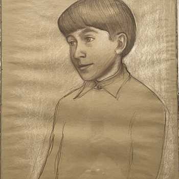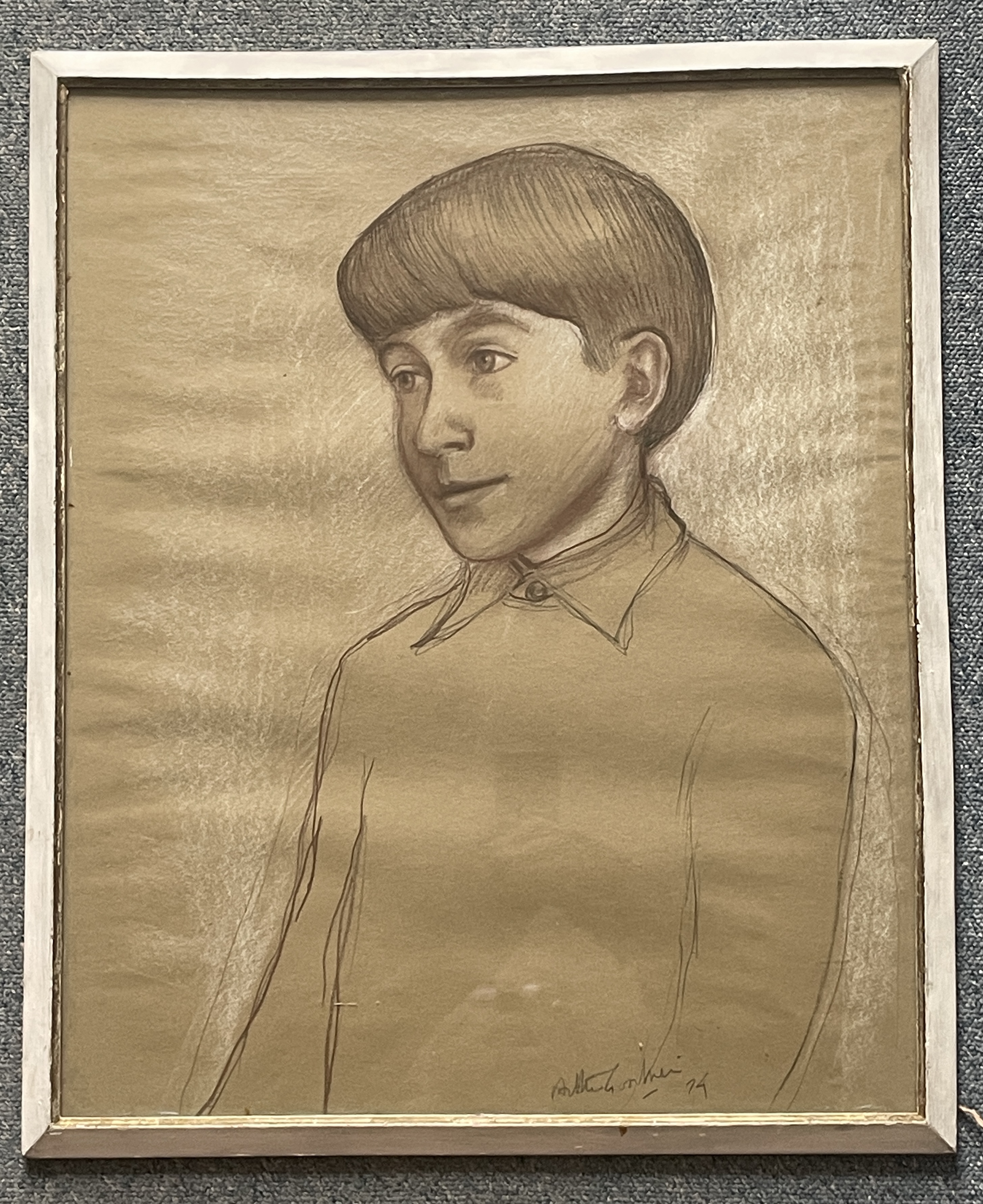 Paul Watson at 13 Arthur Goodwin Crayon and Pencil on Paper Signed, and inscribed on reverse. Frame: 23” x 20” Image: 22” x 19” Arthur Goodwin (1922-1988) studied at Liverpool College of Art before rising to vice-principal at Exeter College of Art under Clifford Fishwick. His works are held in many public collections. Paul Watson is the grandson of the famous American anthropologist Edwin Loeb.
