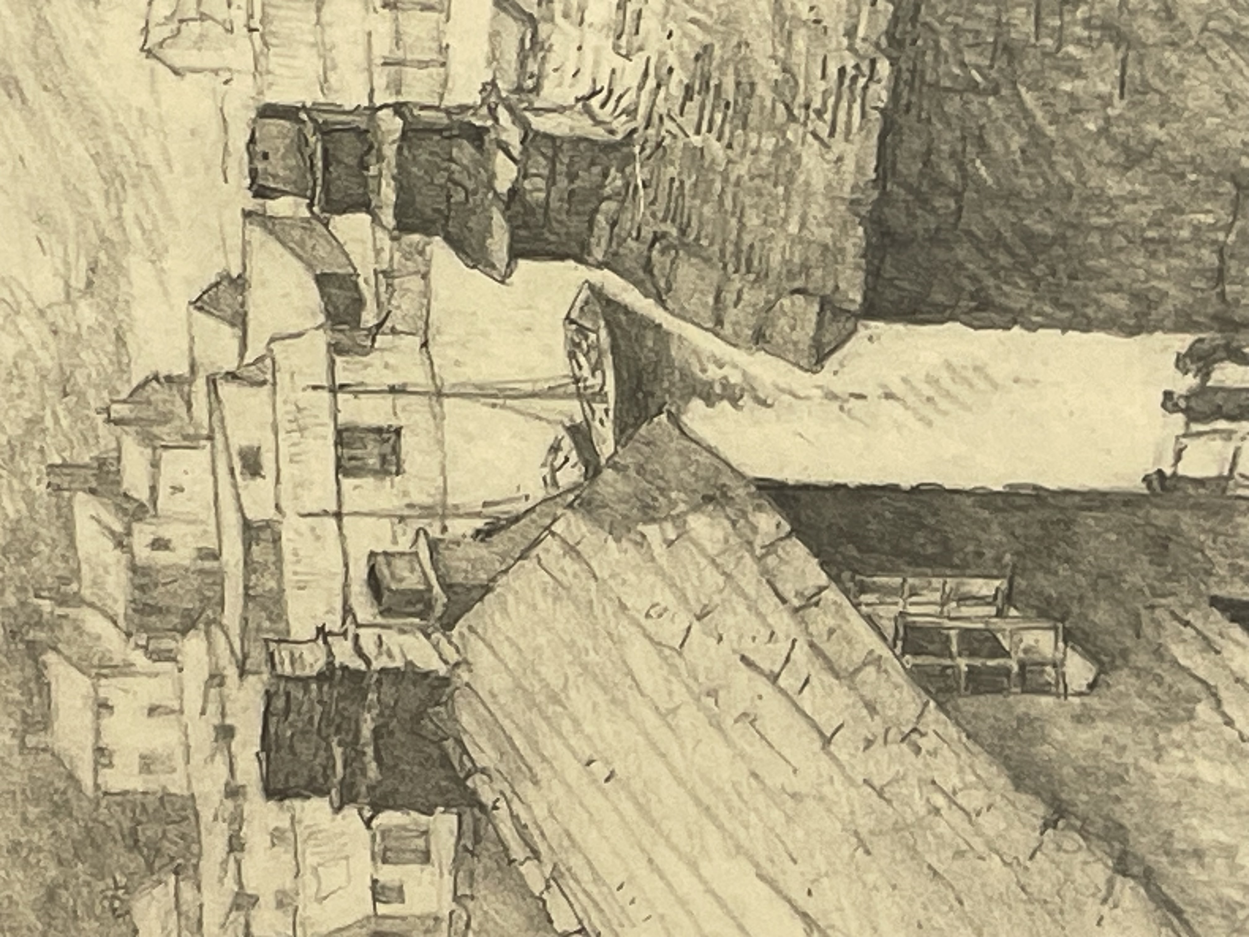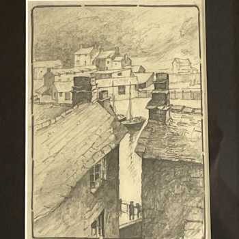Polperro Harbour Fred Dearden Pencil Framed Frame: 11.5” x 9.5” Image: 7.5” x 5.5” Fred Dearden exhibited between 1901 and 1939 (outbreak of World War 2) He had showings at the Royal Academy and also in the Nottingham Museum and Art Gallery.