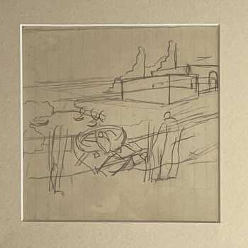 Figures and Boats Stanley Spencer (1891-1959) Pencil Frame: 11” x 11” Image: 5” x 5” Provenance: Ex Studio Sale at Christies 1998 Stanley Spencer was an English painter and one of the most original figures in 20th-century British art. He lived for most of his life in his native village of Cookham, which played a large part in the imagery of his paintings.